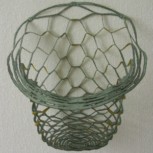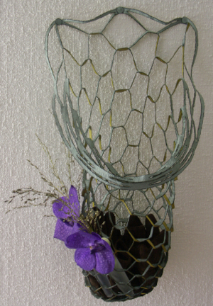 Pièce réalisée selon les techniques du Kirigami. Rangement à suspendre au mur. Matériau textile recto-verso différent.